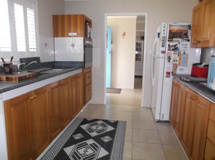 Located within a short walk to Quartpot Creek parklands and with open space on one side, this attractive property provides a comfortable, spacious and low-maintenance home. Three bedrooms all have built-in robes and the bathroom has been recently renovated with a lovely big walk-in shower. There is a separate toilet and a laundry with storage cupboards. A galley style kitchen features timber and has a dishwasher, electric cooktop and wall oven, adjacent meals area with built-in breakfast bar and a wonderful walk-in pantry. The carpeted lounge has a wood heater and ceiling fan, there is a separate formal dining or family room and a front north-facing sunroom.. Outside, a 3 bay shed with power provides secure parking for 2 cars and workspace and there is a garden shed and paved outdoor entertaining area. 2 rainwater tanks provide water for both home and garden and the property is also serviced by town water. Well-fenced, this home will suit any buyer looking for privacy, comfort and space. Call Crisp Real Estate 07 4681 2177 to arrange an inspection.